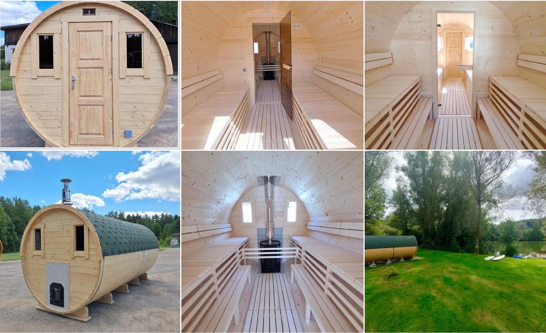 * New beautiful wood barrel 10 person Sauna by the Lake, making it perfect for cold fresh water swimming.