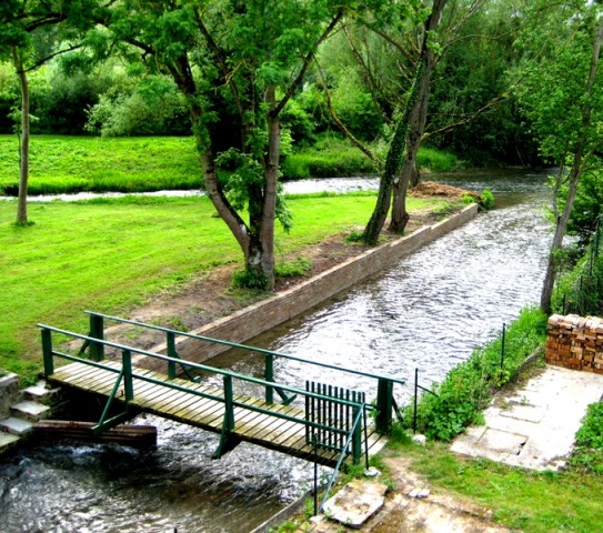 Old and ugly corrugated iron metal sides of canal replaced with new brick walls built for sides of canal, and corrugated metal removed. We had to dismantle an old ruined building on our neighbours property, Madame Adell, who kindly donated the bricks, so the new wall would look like it had always been there, and not spoil the beautiful grounds.